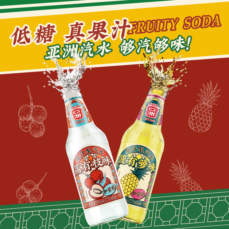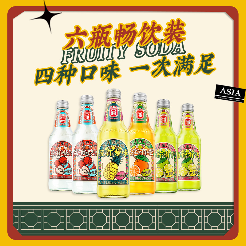 12罐果味汽水清甜果汁k 健力宝荔枝风味碳酸饮料汽水330ml