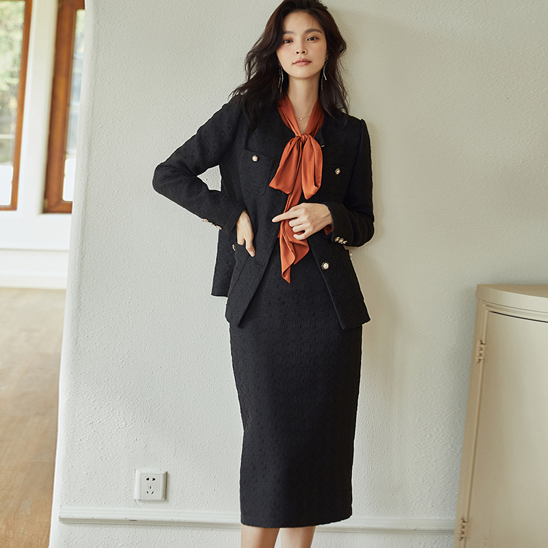 中长裙高腰包臀裙黑色西装 半身裙修身 裙职业女中裙子 新款 曼友秋季