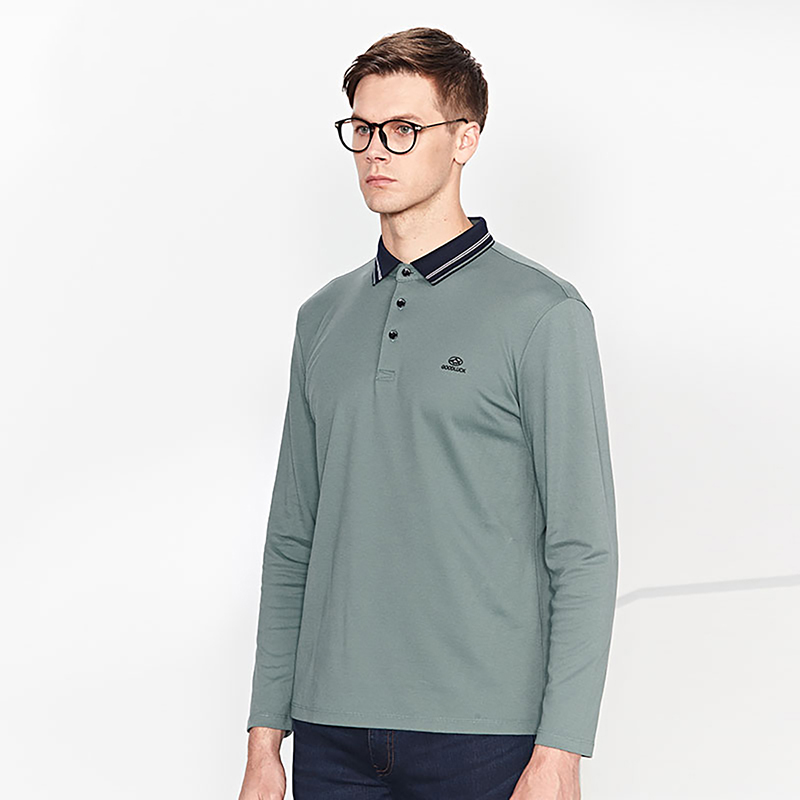 POLO衫 棉质休闲上衣男装 LR12501 翻领T恤男青年秋新款 德鲨撞色长袖