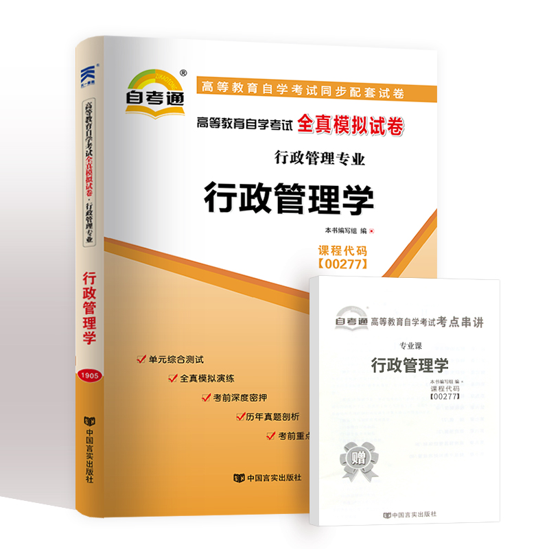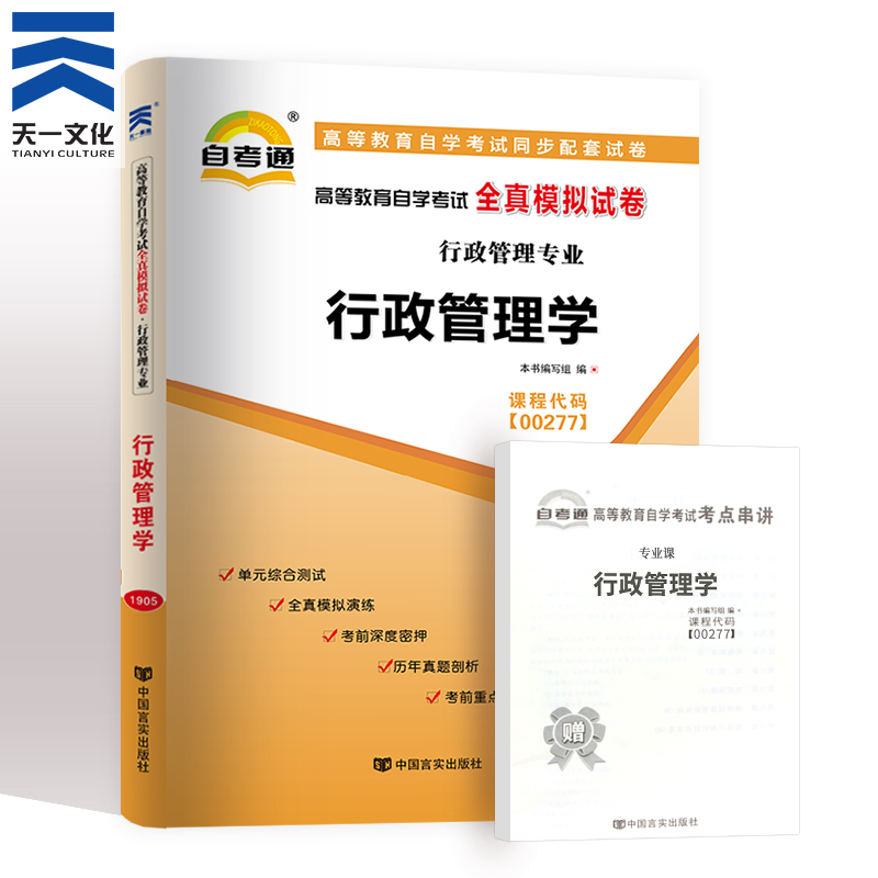自学考试中专升大专高起专教育教材复习资料成人自考 0277行管专科书籍辅导用书全真模拟题 行政管理学00277 天一自考通试卷
