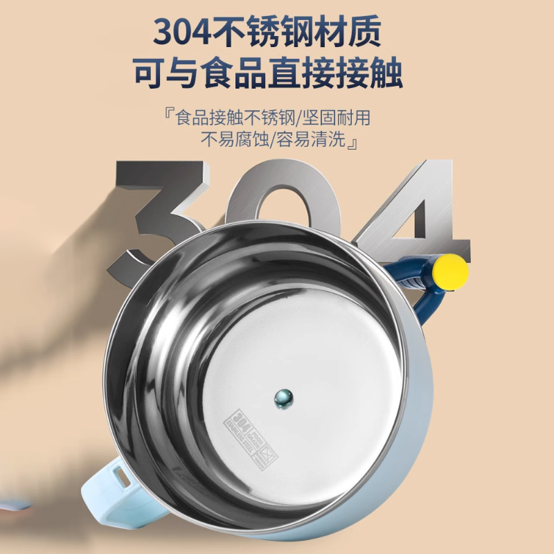 316不锈钢泡面碗宿舍学生带盖儿童餐具套装 家用单个汤饭碗带手柄