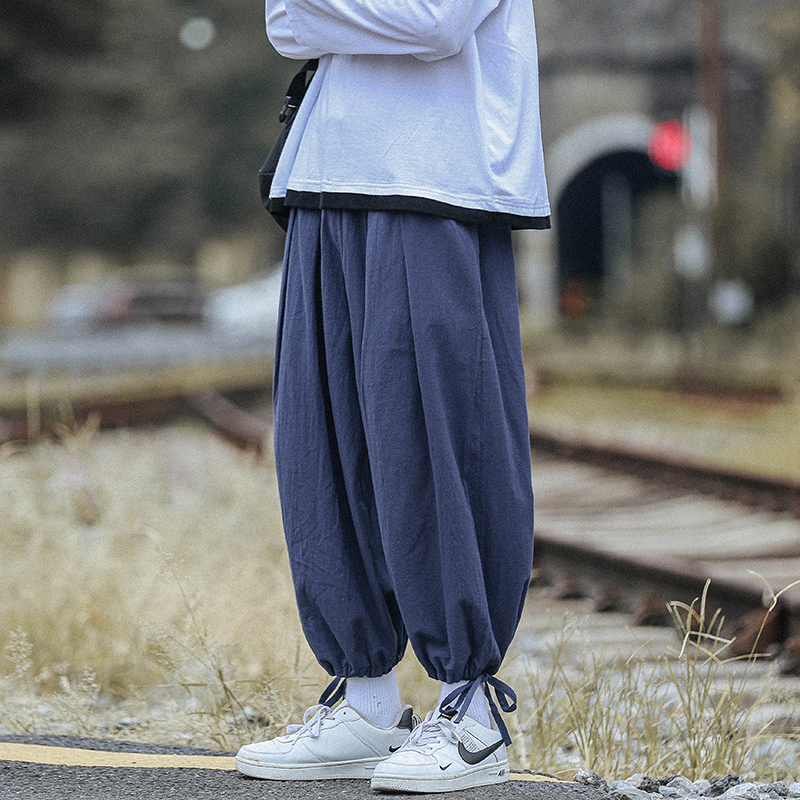 潮牌百搭阔腿束脚休闲长裤 直筒宽松大码 子男秋季 山本风日系灯笼裤