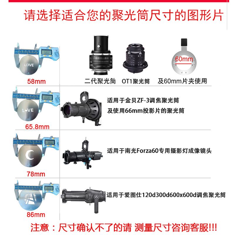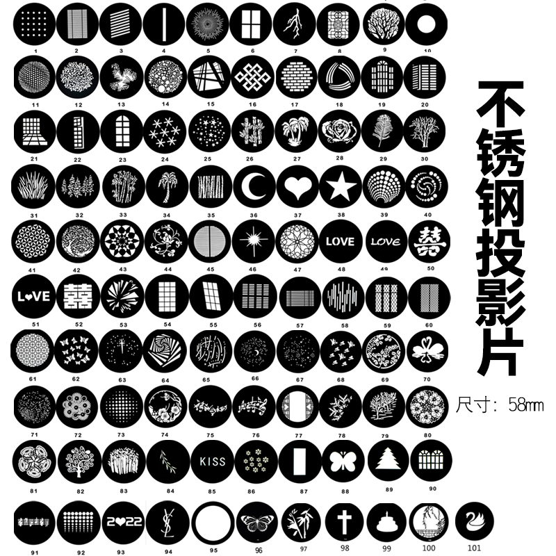 聚光筒插片南光灯爱心造型片光学束光筒卡片摄影光影板三代投影片58mm神牛金贝54mm不锈钢MG06通用投影片色片