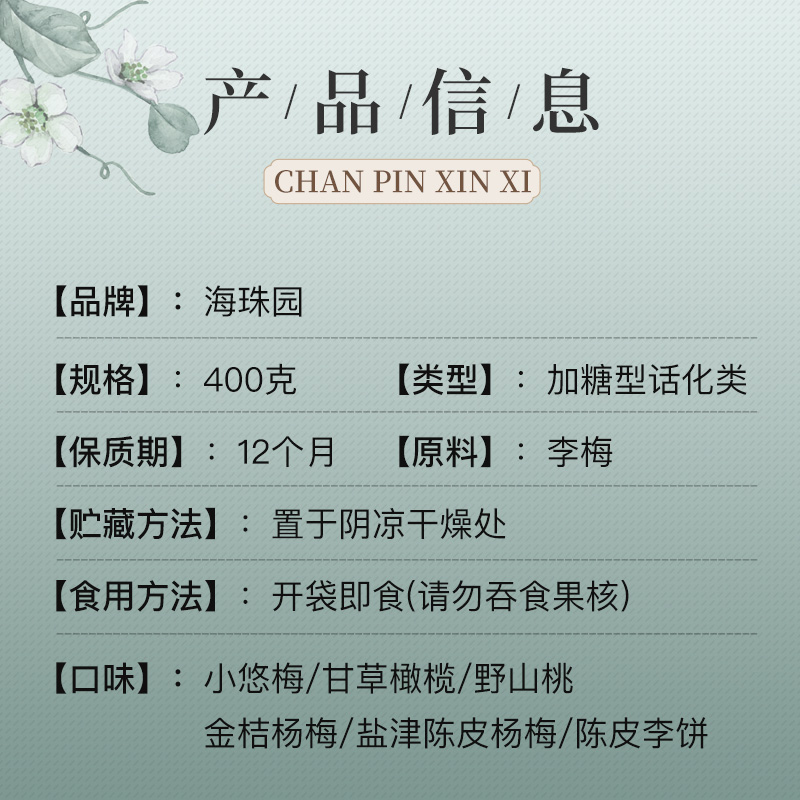 海珠园陈皮李饼400g 李解古早李饼盐津陈皮金桔杨梅甘草话李零食