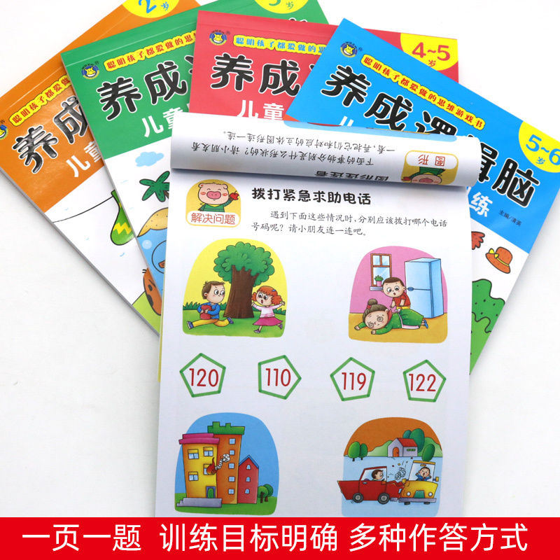 全5册养成逻辑脑儿童思维力训练2 7岁宝宝启蒙早教书籍专注力观察力注意力训练数学一日一练空间大小图形数数找不同练习题