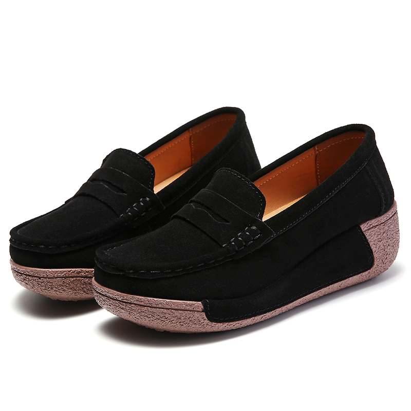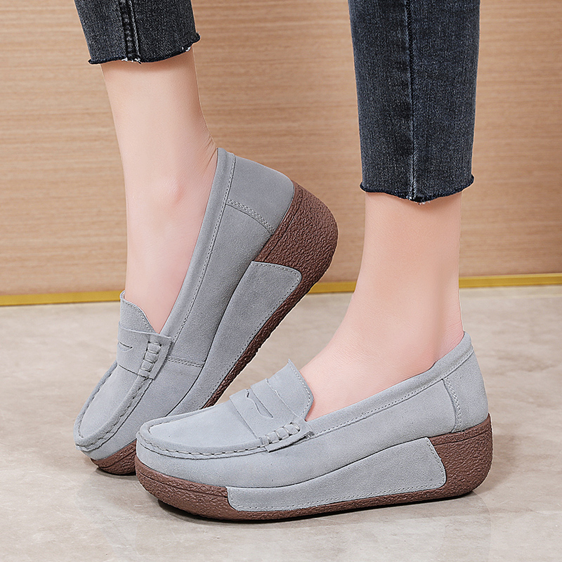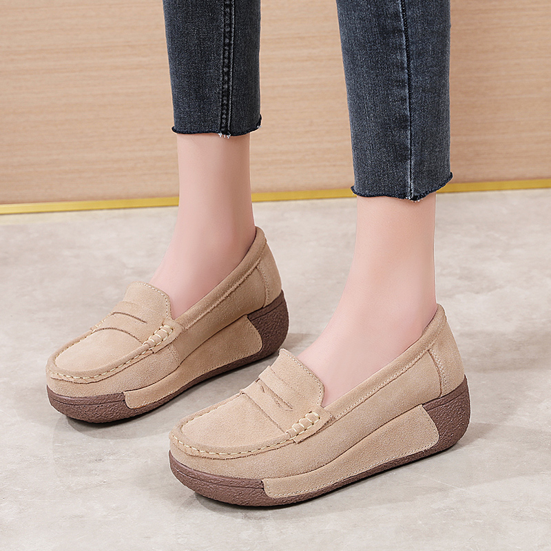 2025春秋妈妈鞋 女鞋 一脚蹬摇摇鞋 坡跟松糕鞋 女小皮鞋 真皮厚底单鞋