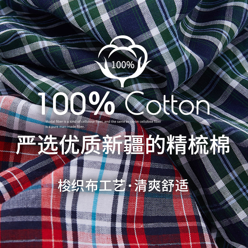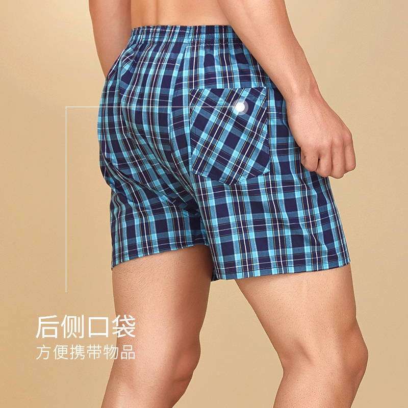 居家男生内衣裤 三枪内裤 四角裤 宽松透气全棉睡裤 男纯棉格子阿罗裤