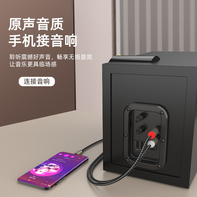 双莲花音频线一分二适用华为小米typec手机连接功放音箱低音炮音响转接线rca插头荣耀VIVO转换器AV输出连接线