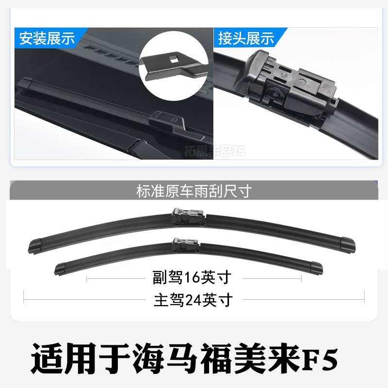 适用于海马福美来F5雨刮器原车款 静音无骨雨刷片胶条 2018专用18款