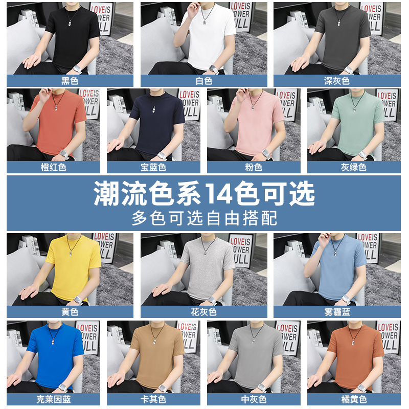 冰丝凉感半袖 液氨丝光棉短袖 纯色白色上衣服夏季 2025新款 t恤男装