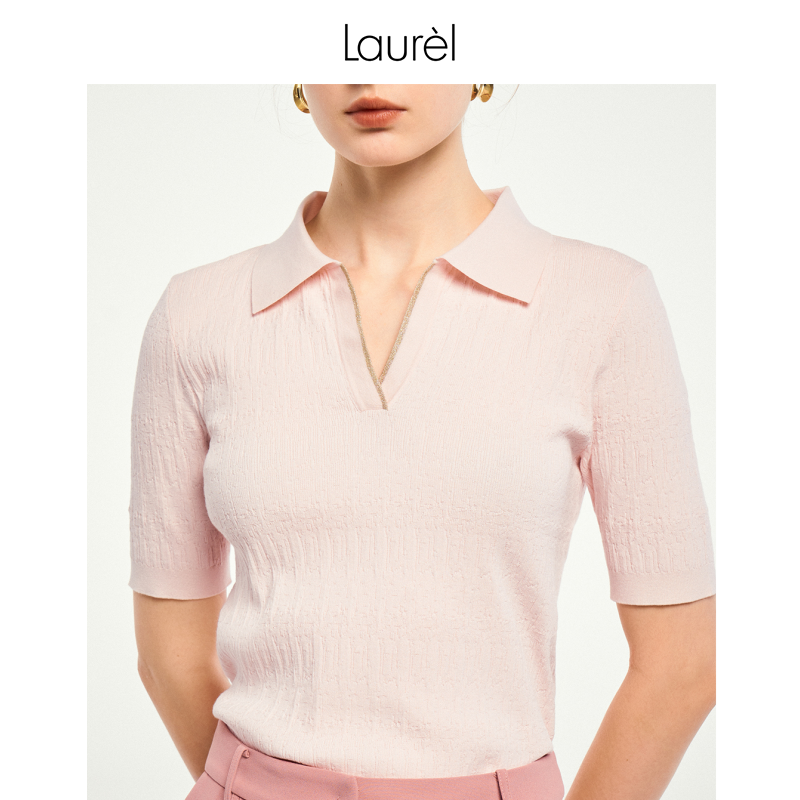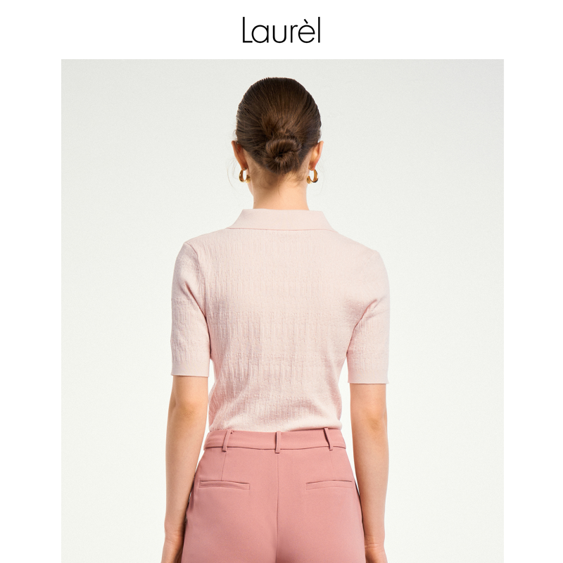 女LWD341M16000 POLO衫 Laurel劳芮春秋修身 气质精纺棉肌理航海短袖