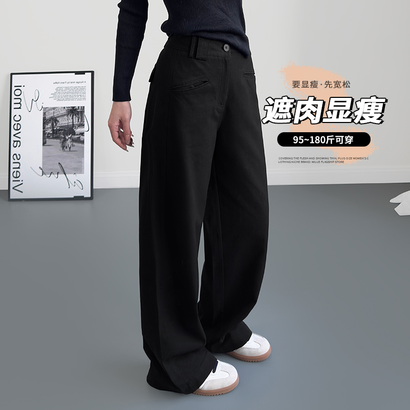 胖mm阔腿西装 新款 裤 大码 子 黑色休闲裤 宽松显瘦直筒长裤 女2025春季
