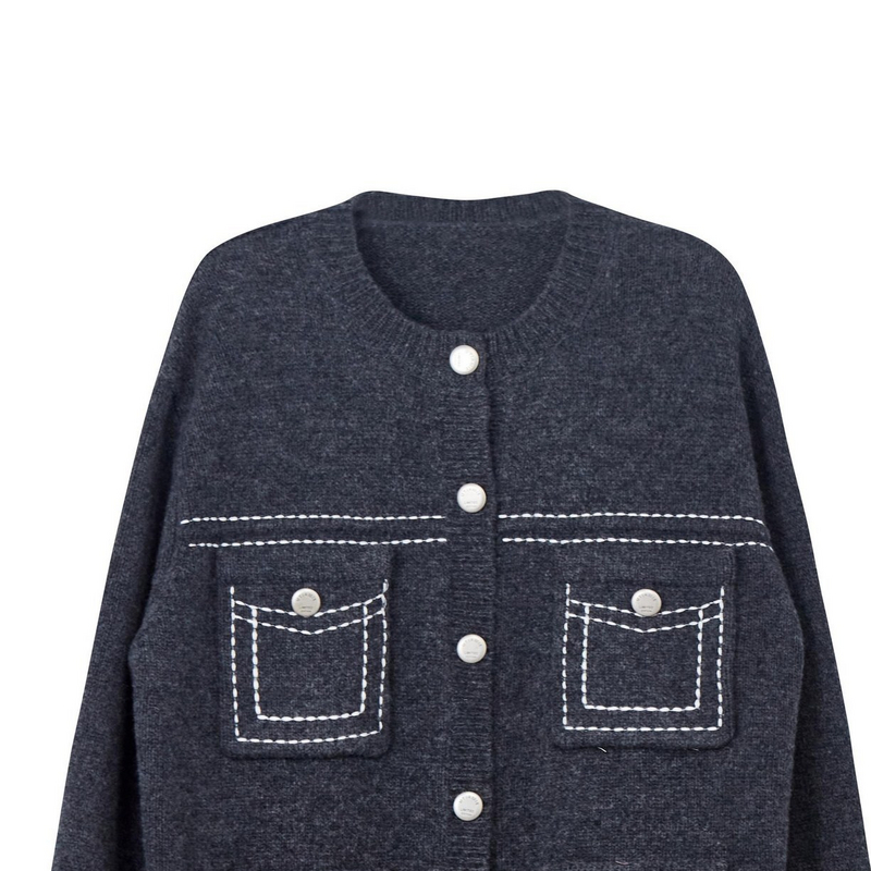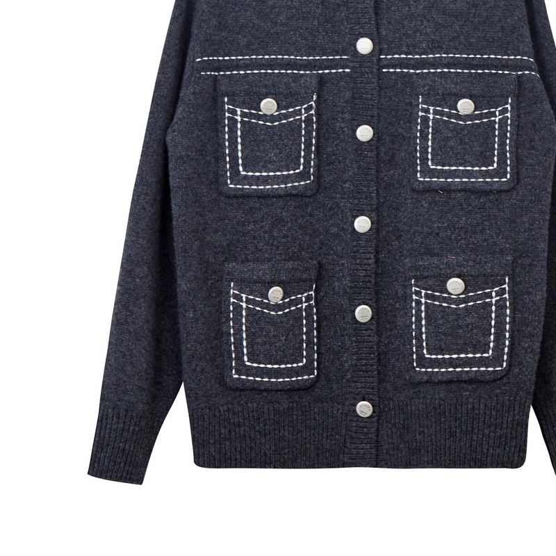 设计感小香风针织衫 专柜新款 深灰色绵羊毛毛衫 TI尤缇2025春季 女