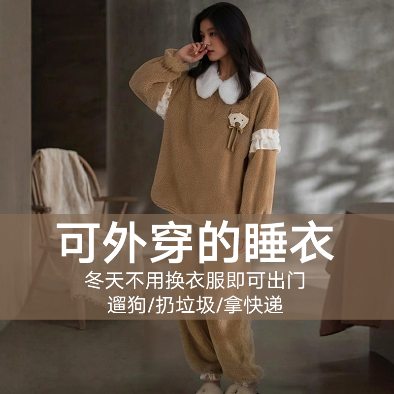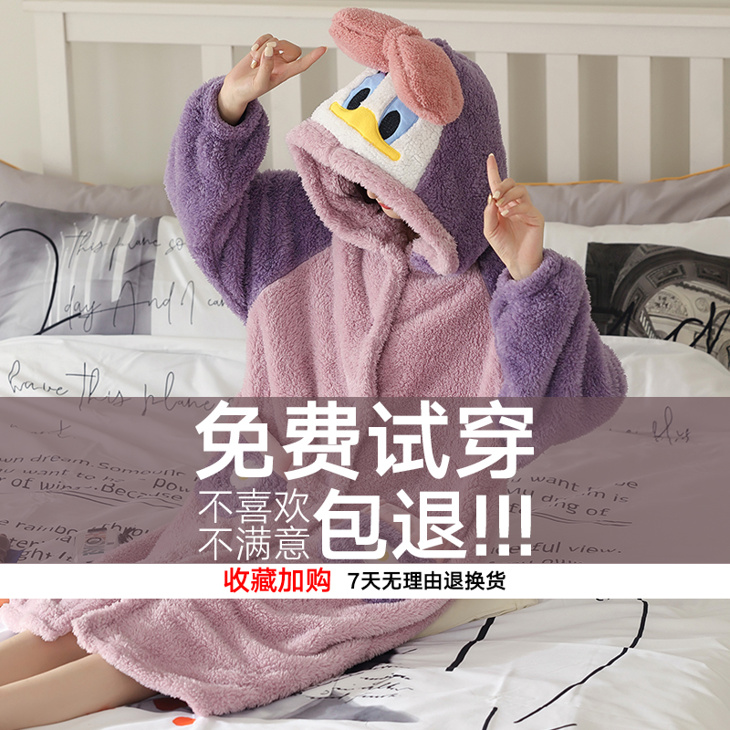 家居服 加绒加厚珊瑚绒睡衣长款 雅鹿法兰绒冬季 睡袍女2025年春新款
