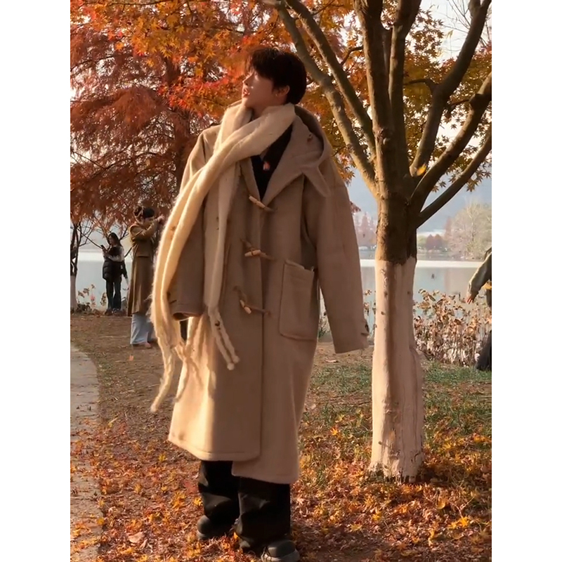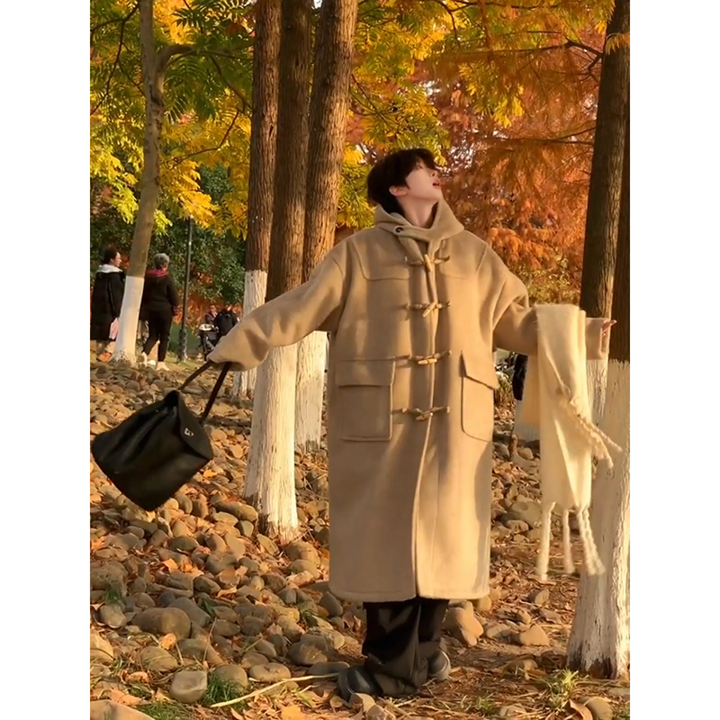 过膝无羊绒呢子风衣外套韩版 毛呢大衣男中长款 宽松落肩 新款 秋冬季
