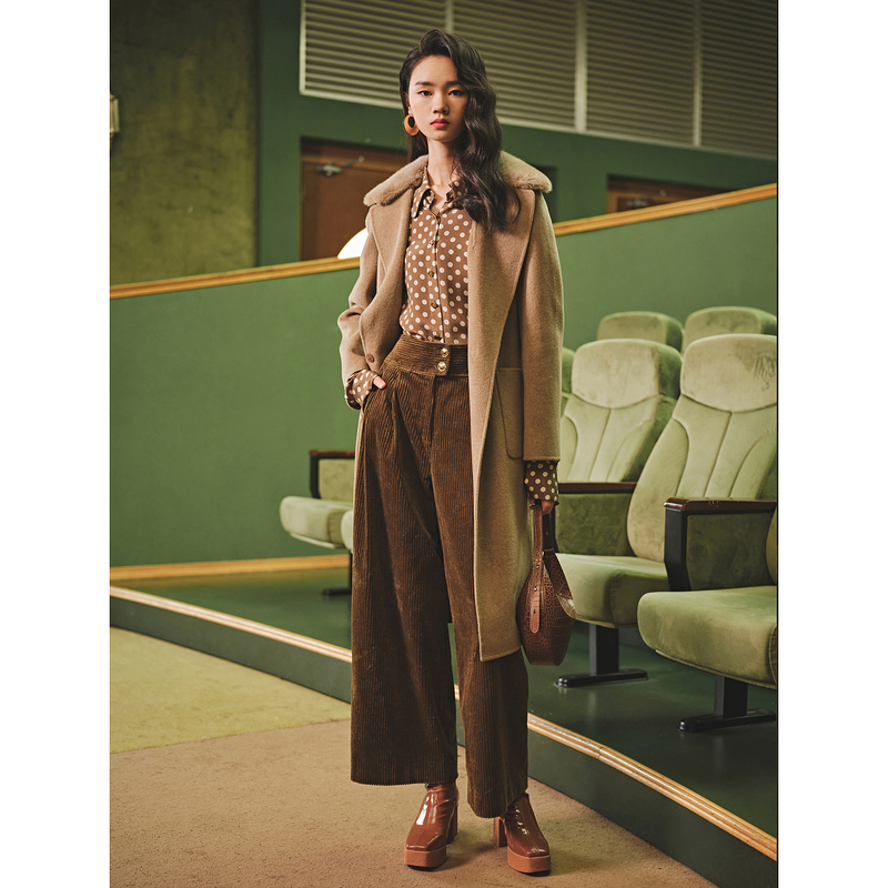 YINER音儿女装 水貂毛领双面纯羊绒大衣 冬季