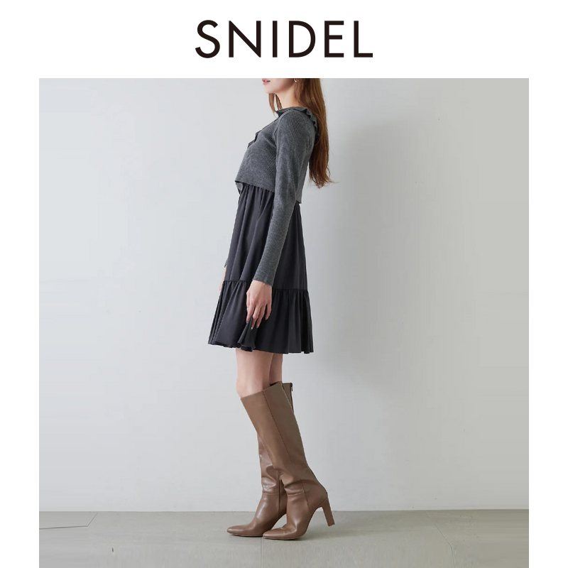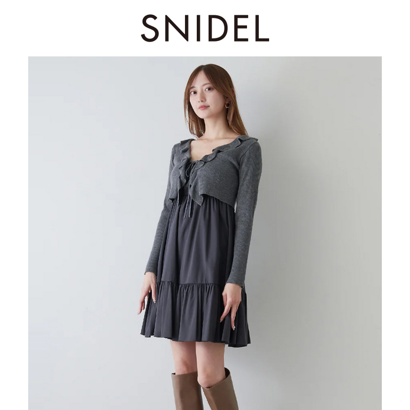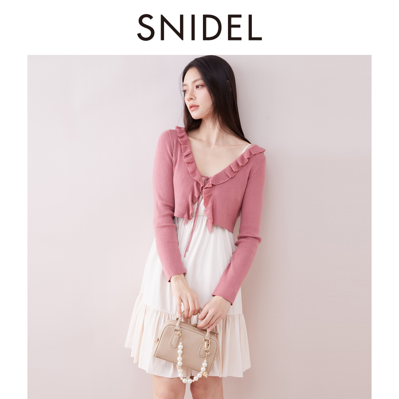SWNO251014 吊带连衣裙套装 SNIDEL2025春夏新品 荷叶边系带针织开衫