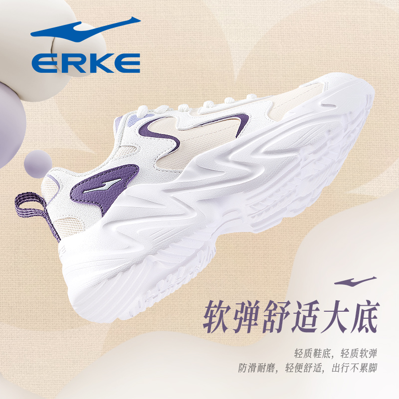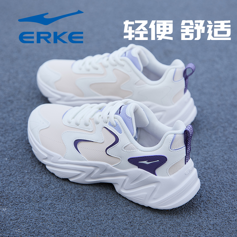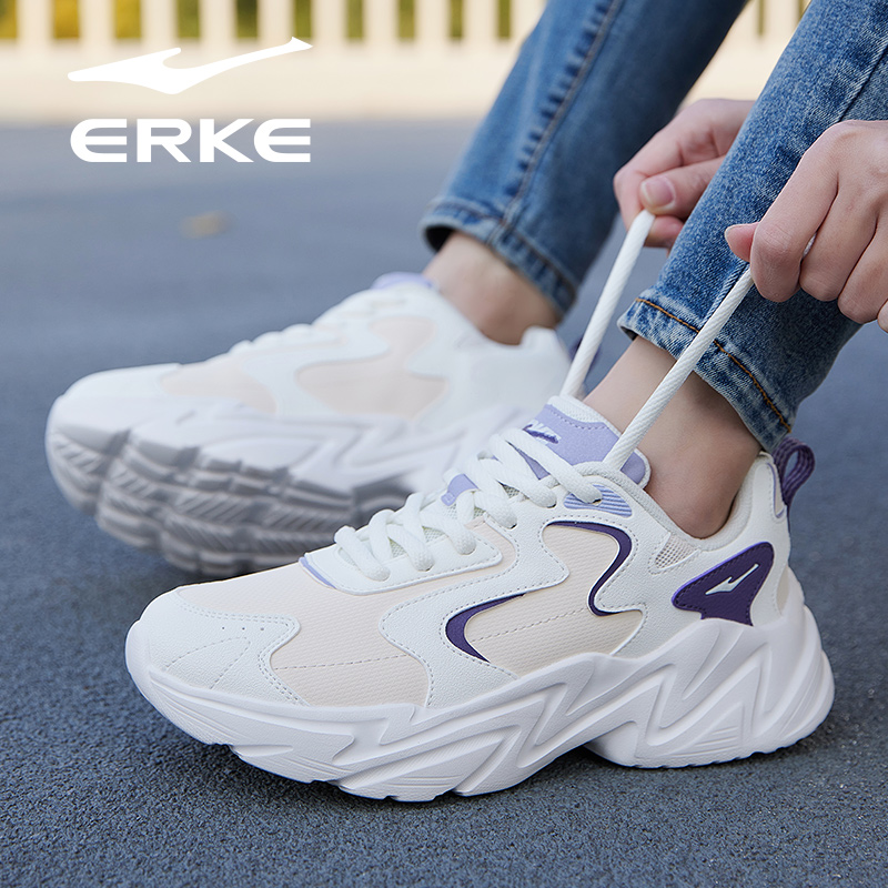 女鞋 轻便舒适妈妈跑步鞋 2025秋季 皮面老爹鞋 子 新款 鸿星尔克运动鞋