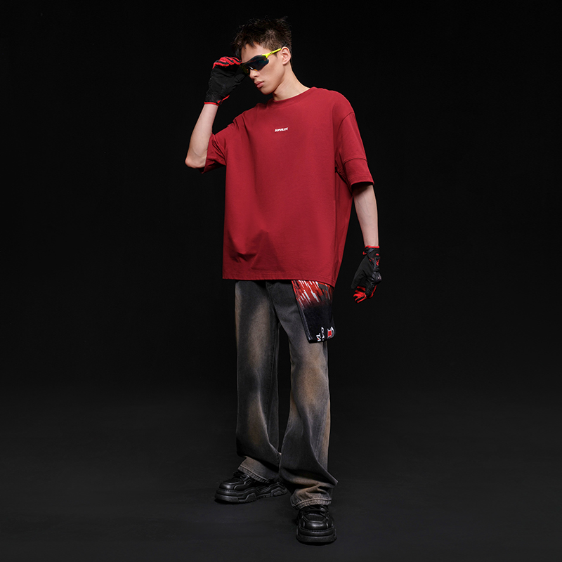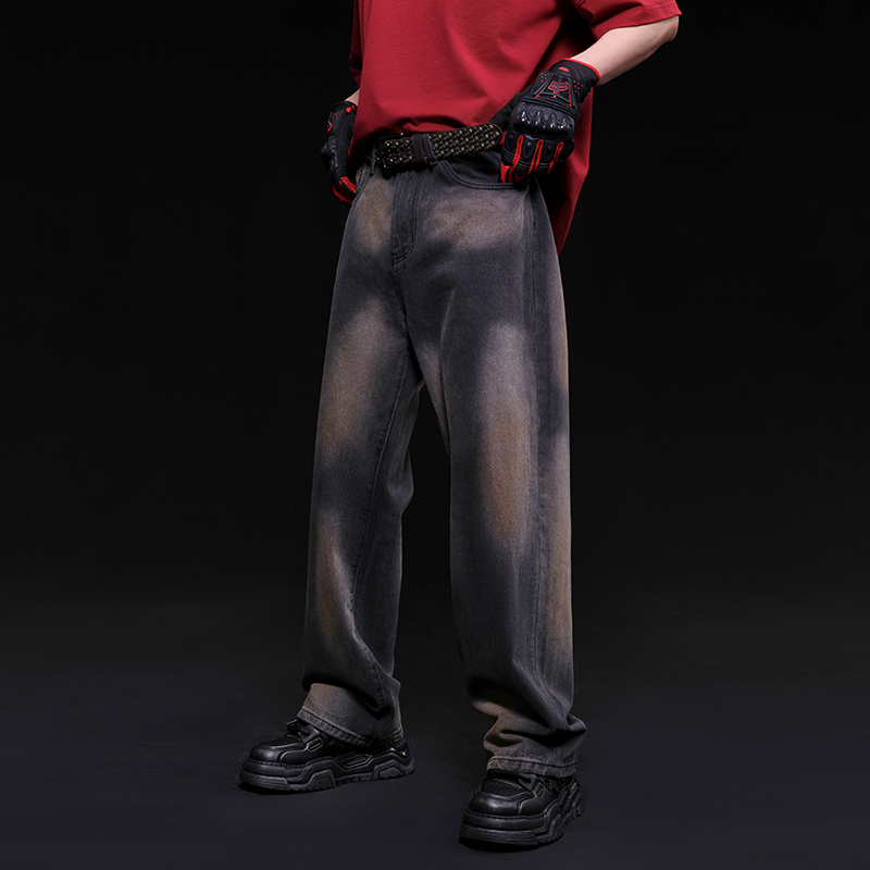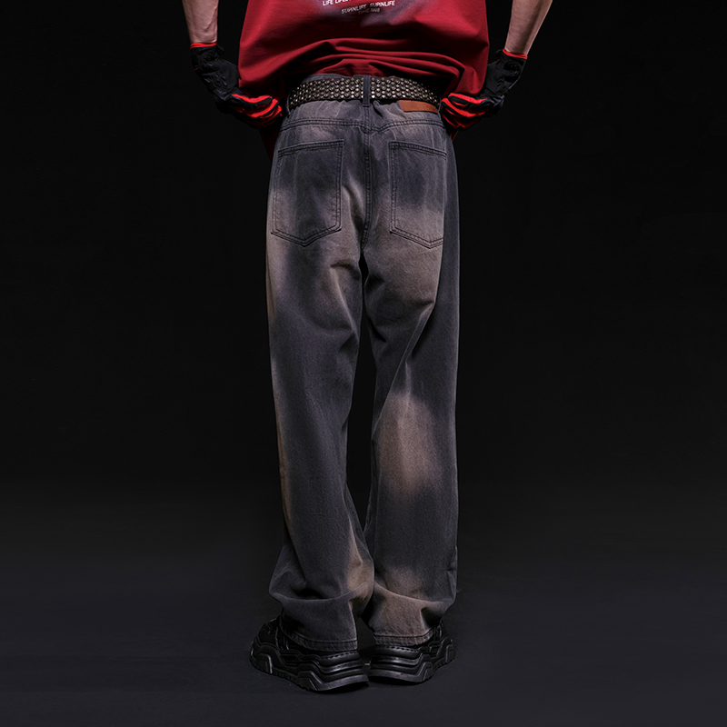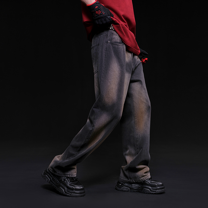 2025冬新款 王安宇同款 宽松弧形裤 男做旧复古阔感弯刀裤 森马牛仔裤