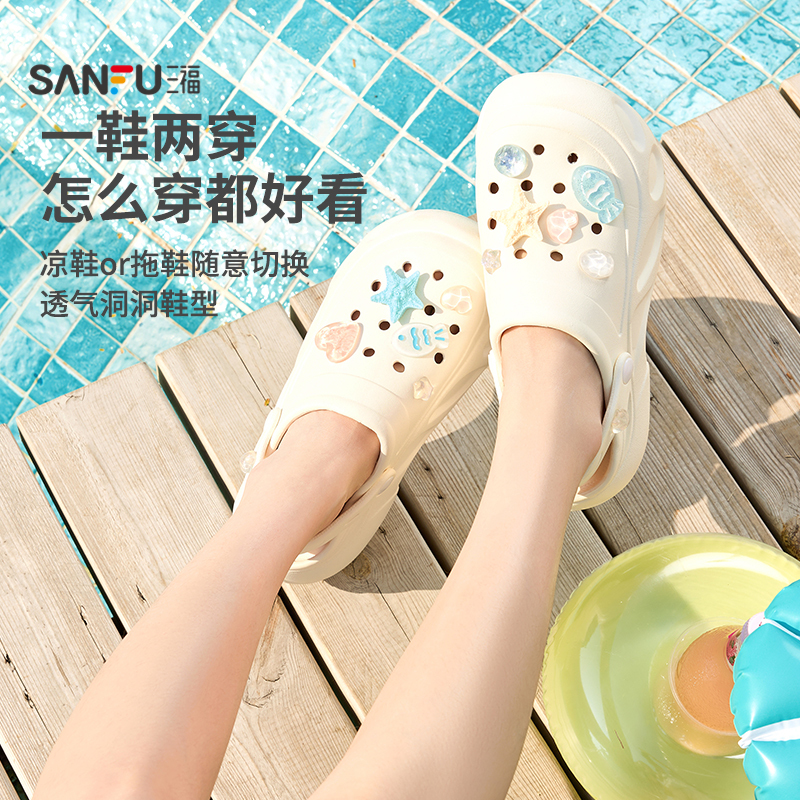 夏季 沙滩足弓支撑eva防臭厚底包头凉鞋 外穿女 女款 孕妇防滑洞洞鞋