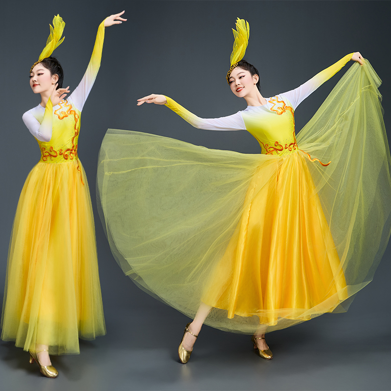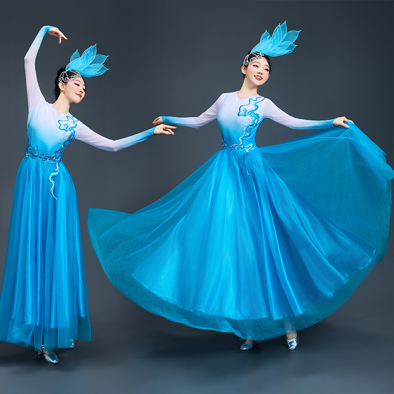 演出服成人女开场舞大裙摆新款 飘逸伴舞服现代舞演出服长裙舞台服