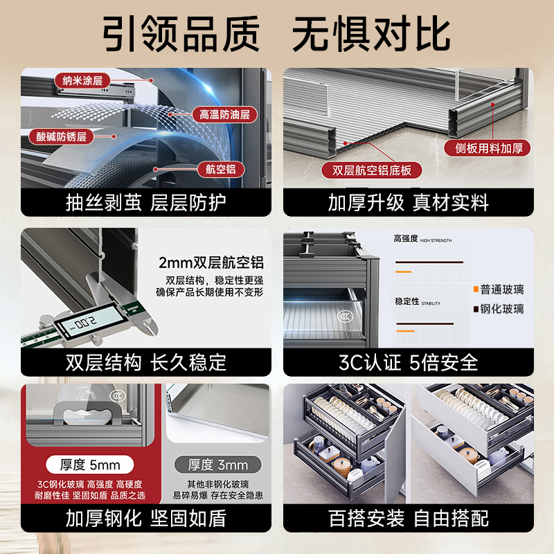 悍高橱柜拉篮铝合金双层抽屉式 碗篮内置碗架304不锈钢收纳碗碟篮