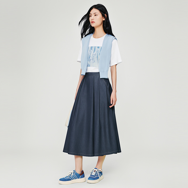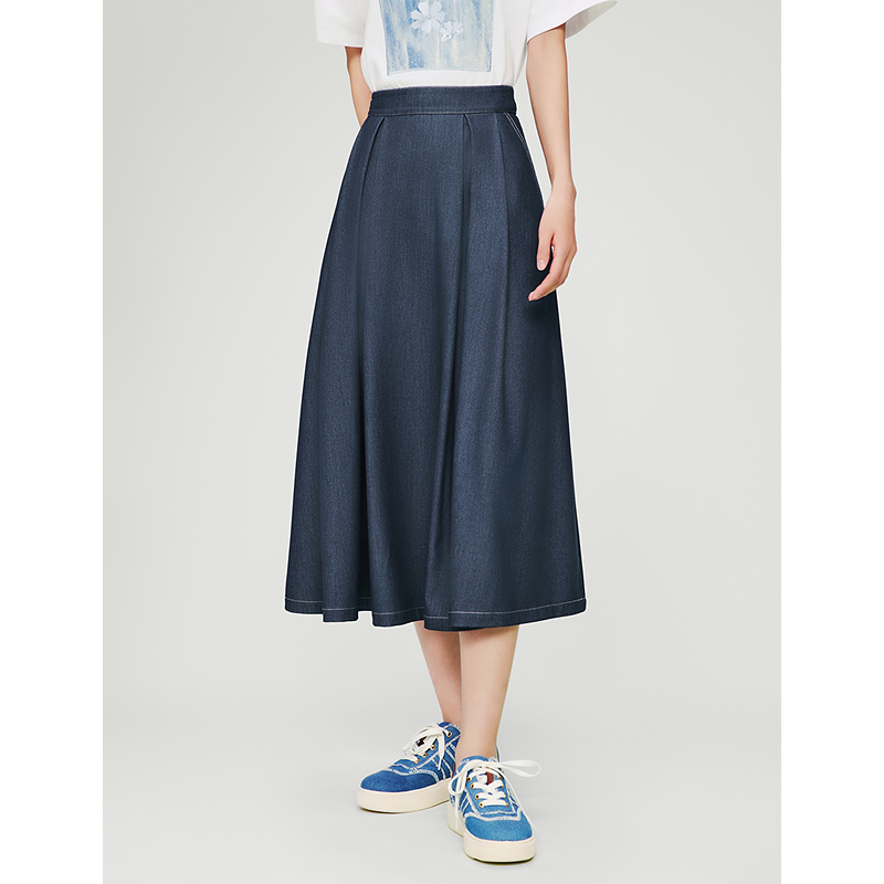 新款 半身裙定位压褶A字伞裙女2025春季 商场同款 ELSEWHERE珂思
