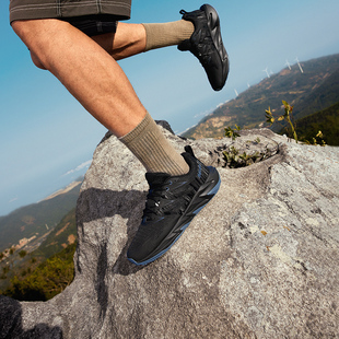 轻便运动鞋 安踏轻质皮面男鞋 革面黑色软底减震防滑跑步鞋 秋季 跑鞋