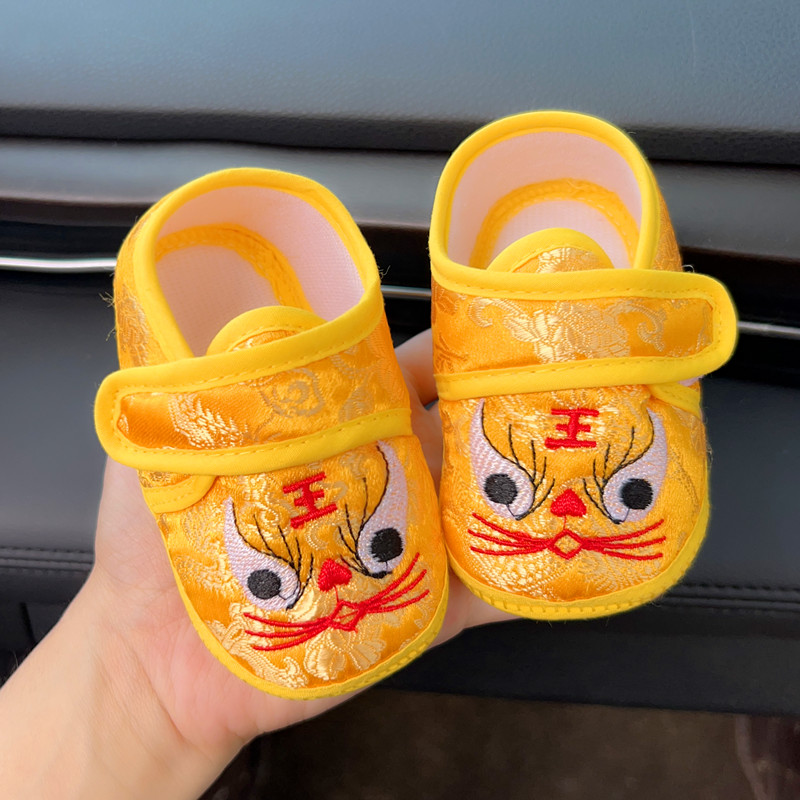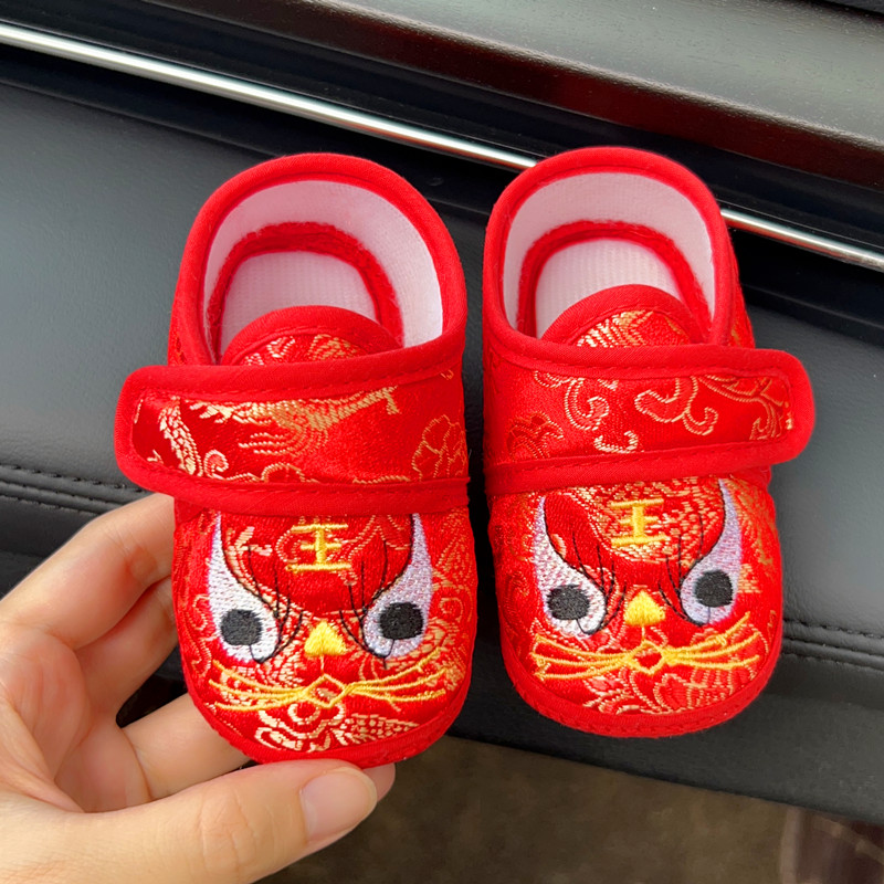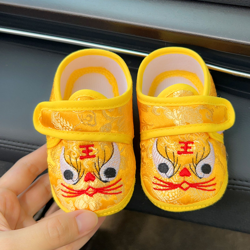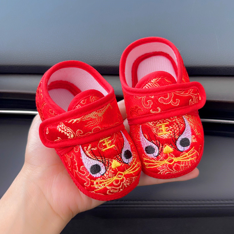 男女宝宝满月百天春秋抓周老虎鞋 一周岁虎头鞋 婴儿红色软底步前鞋