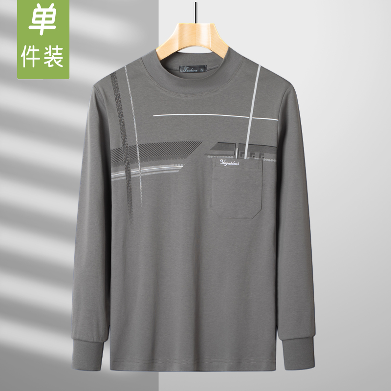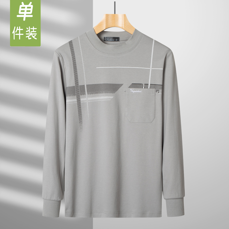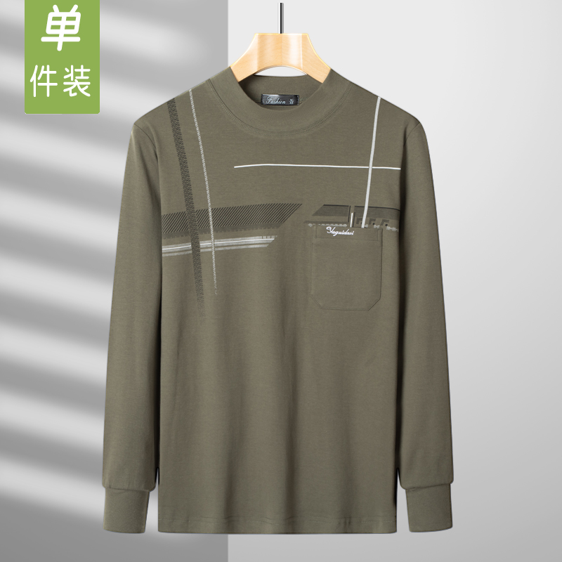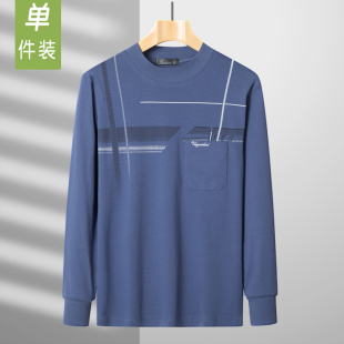 T恤纯棉卫衣圆领老人爷爷打底衫 秋装 长袖 中老年男士 上衣服 爸爸装