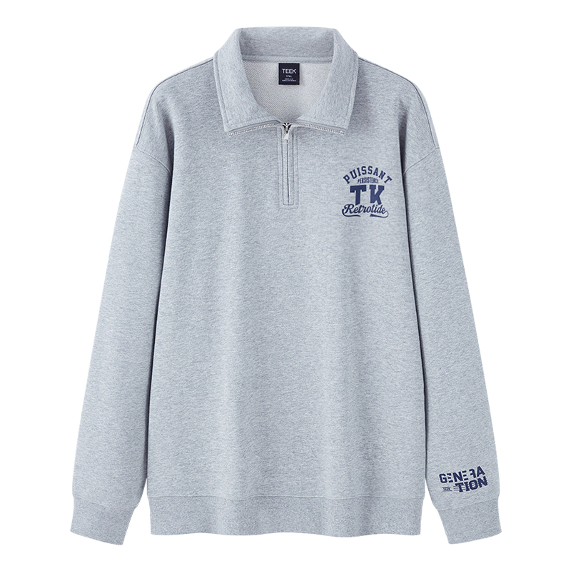 T恤学院风高领外套 纯棉POLO青少年立领长袖 半拉链翻领卫衣男 秋季