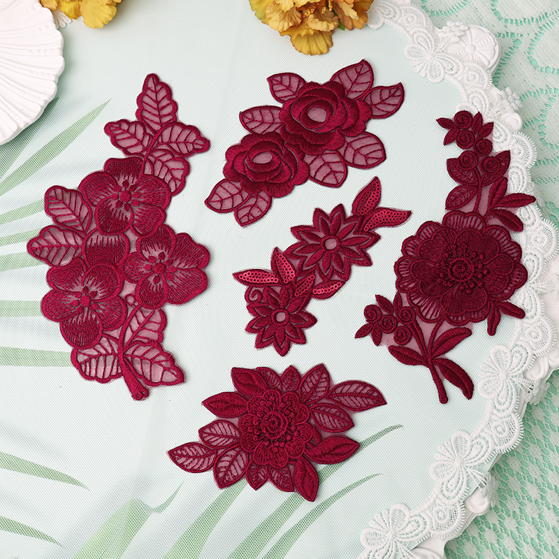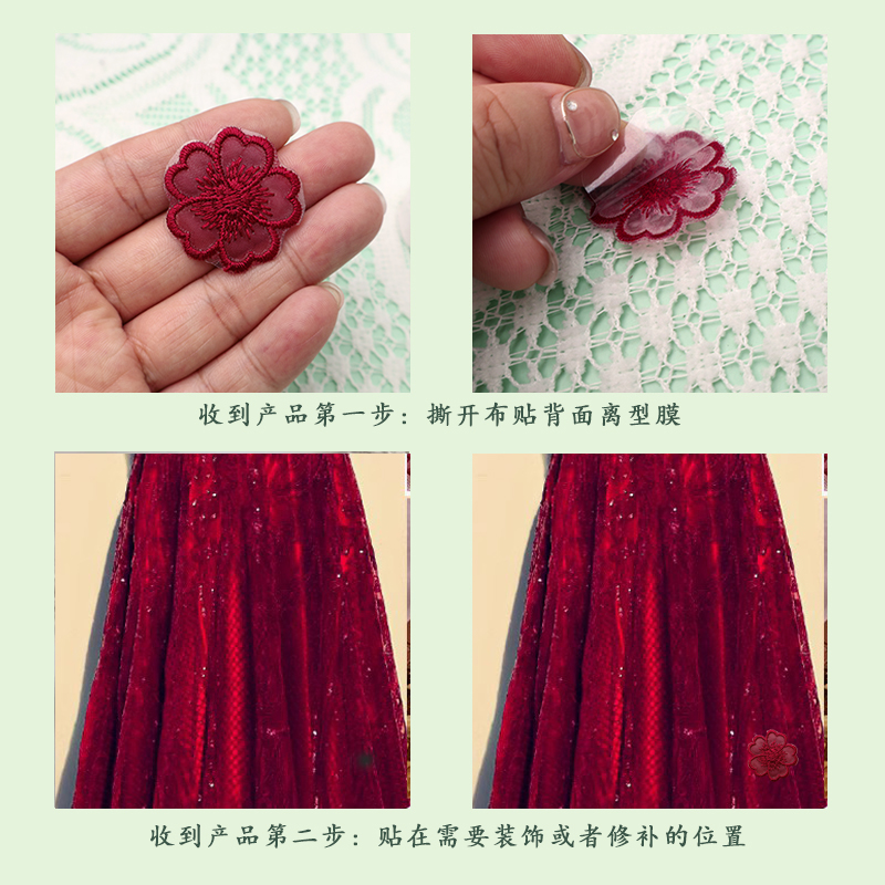 酒红色蕾丝补丁贴网纱自粘布贴羽绒服婚纱裙子窗帘修补贴花破洞贴