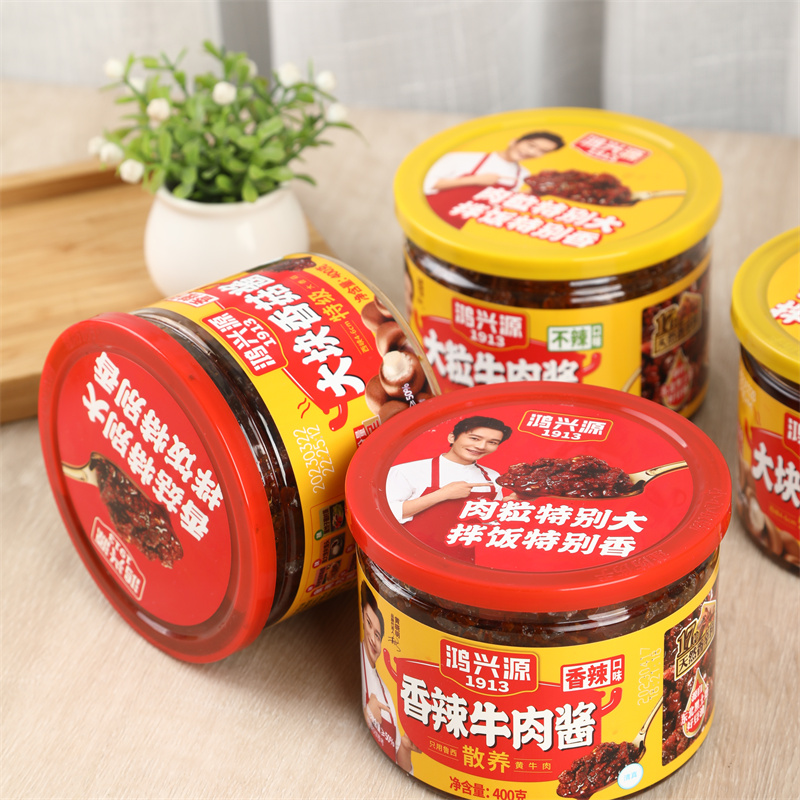 鸿兴源牛肉酱香菇酱香辣400g罐装 蘑菇酱拌面拌饭下饭菜酱不辣蘸料