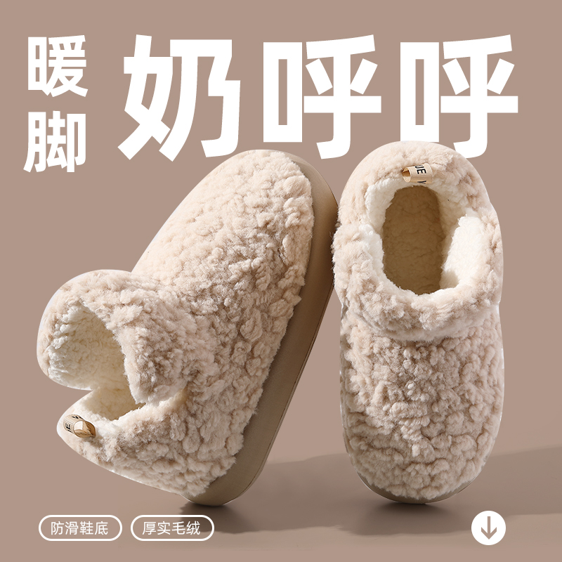 女款 包跟室内家居厚底毛毛绒保暖月子棉鞋 外穿 女士冬季 高帮棉拖鞋