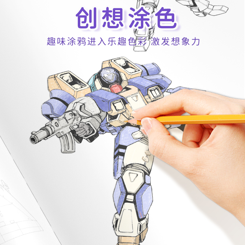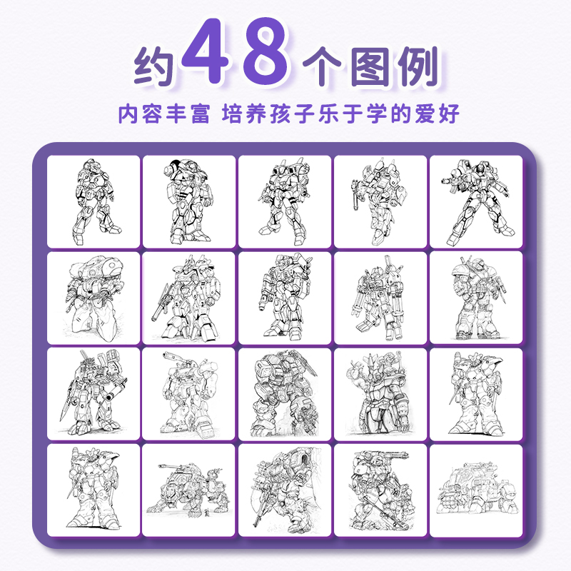 未来机甲描摹本 儿童线稿控笔练习画画临摹技法漫画卡通涂鸦白描图画涂色动漫绘画线描美术基础入门画本画册