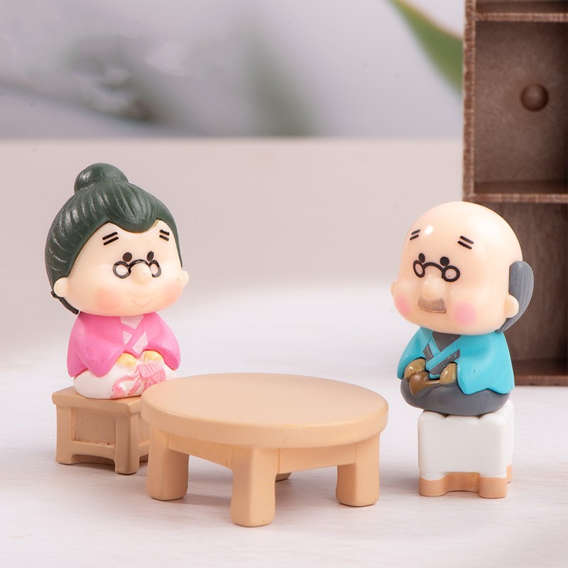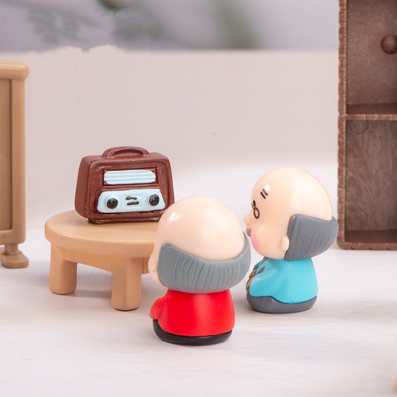 微缩装 饰迷你玩偶 饰摆件卡通玩具老头老太爷爷奶奶过家家公仔装