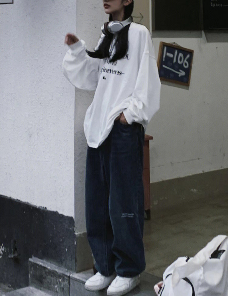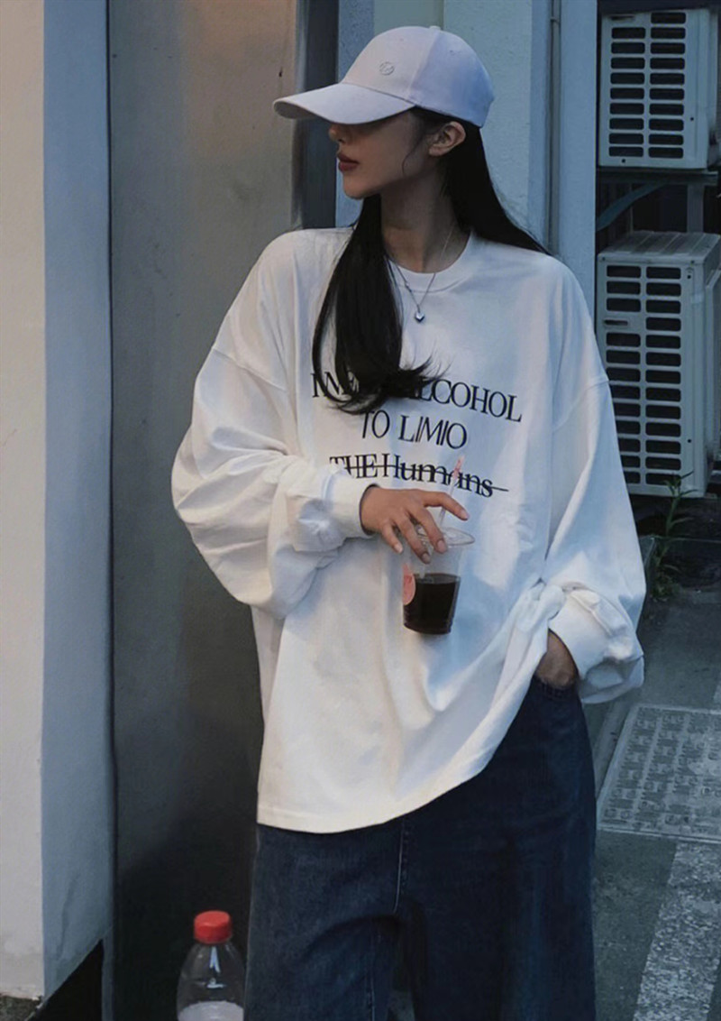 纯棉oversize设计感长袖 ins潮牌宽松hiphop初秋上衣 t恤女春秋薄款