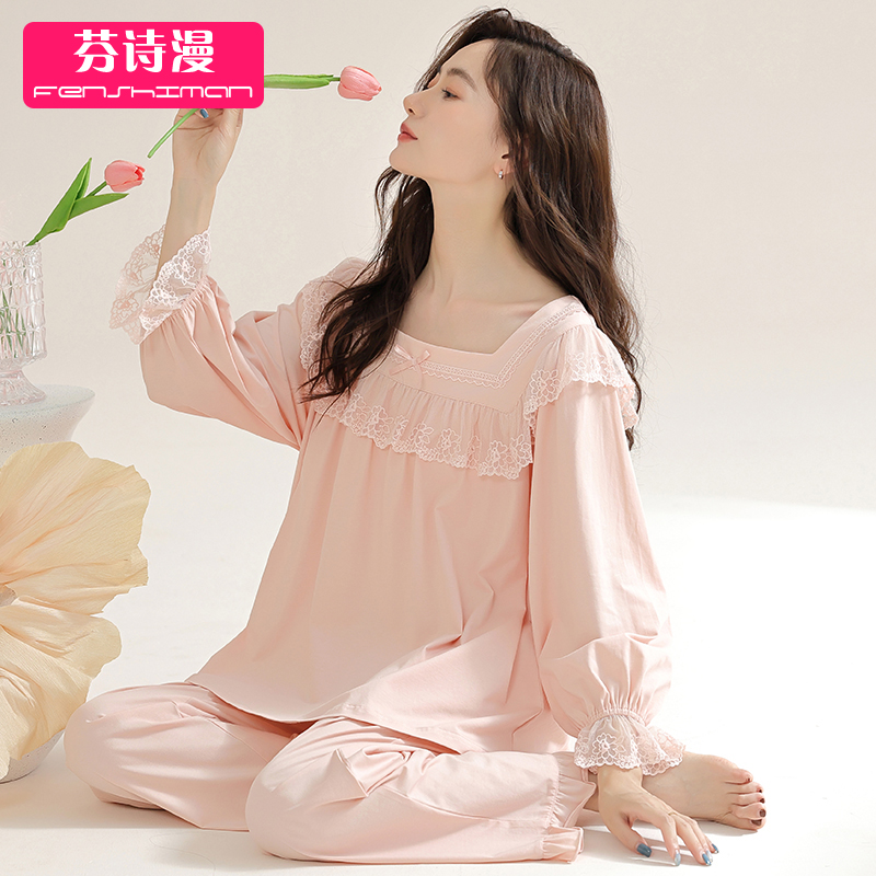 纯棉长袖 薄款 女款 2025年新款 公主风奢华家居服 秋季 睡衣女士春秋款
