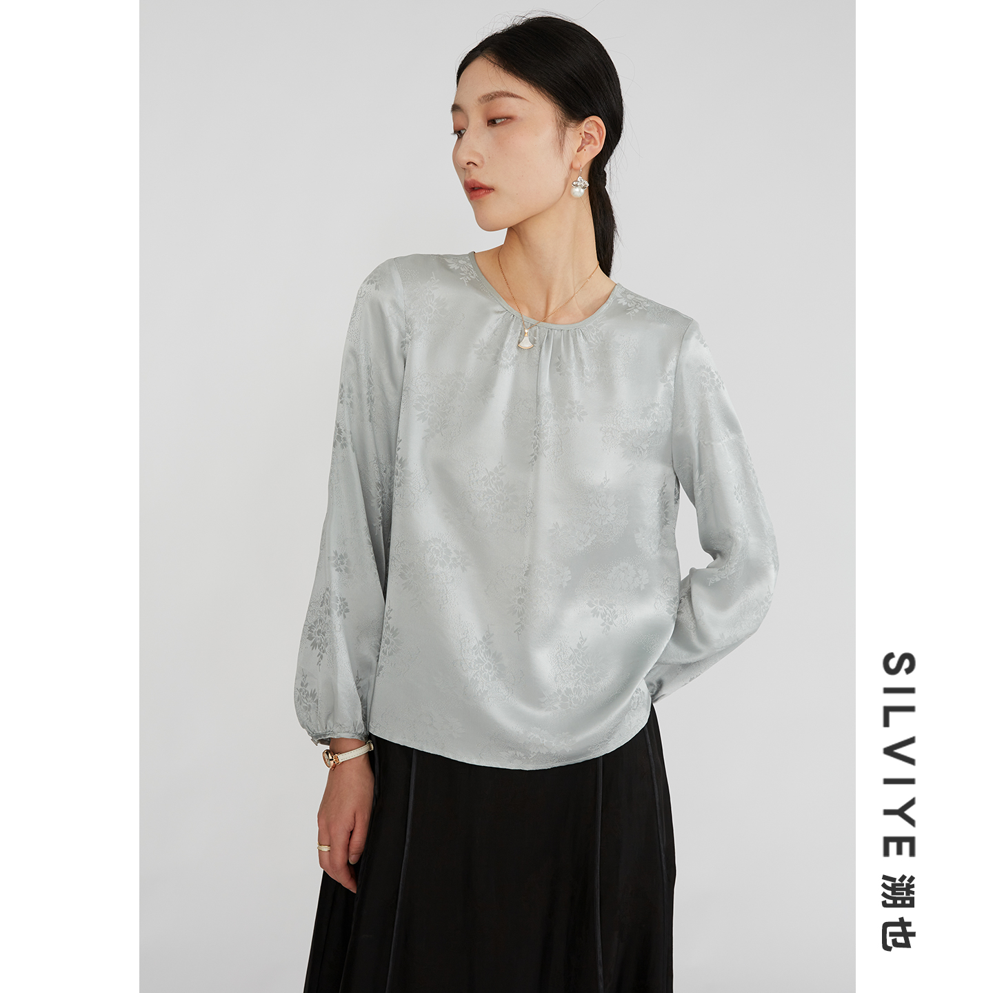 2025春季 女长袖 气质通勤飘带衬衣醋酸上衣 高级感立领缎面衬衫 法式
