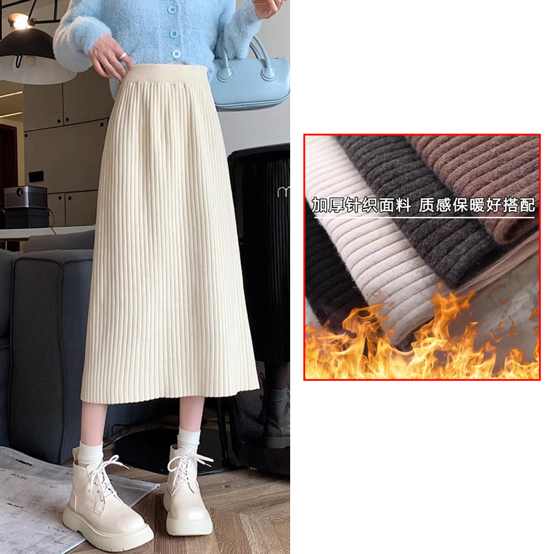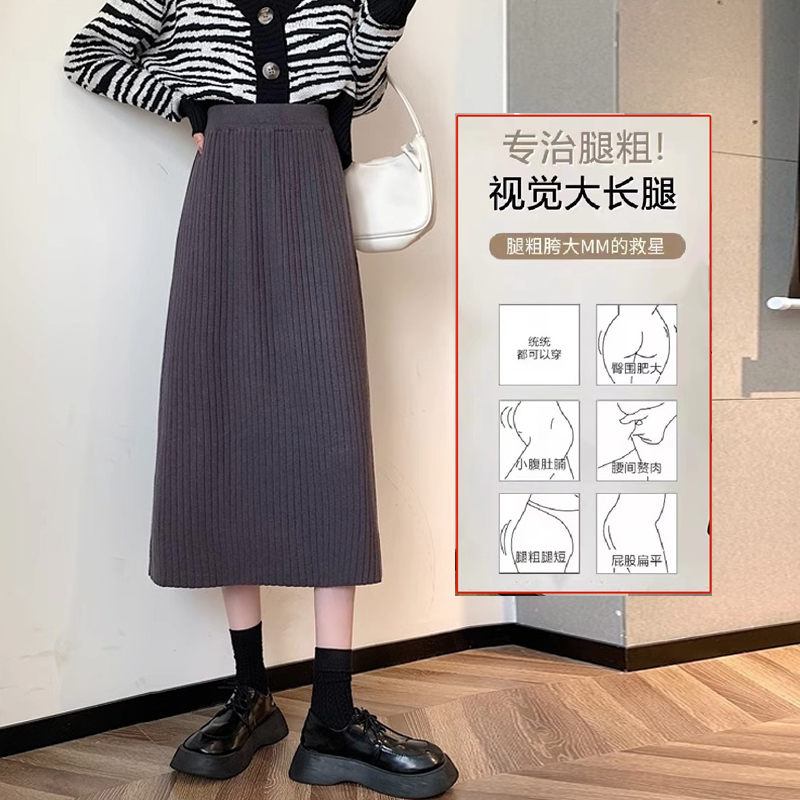大码 毛线伞裙a字裙 胖mm梨形身材针织半身裙女秋冬遮胯加厚中长款