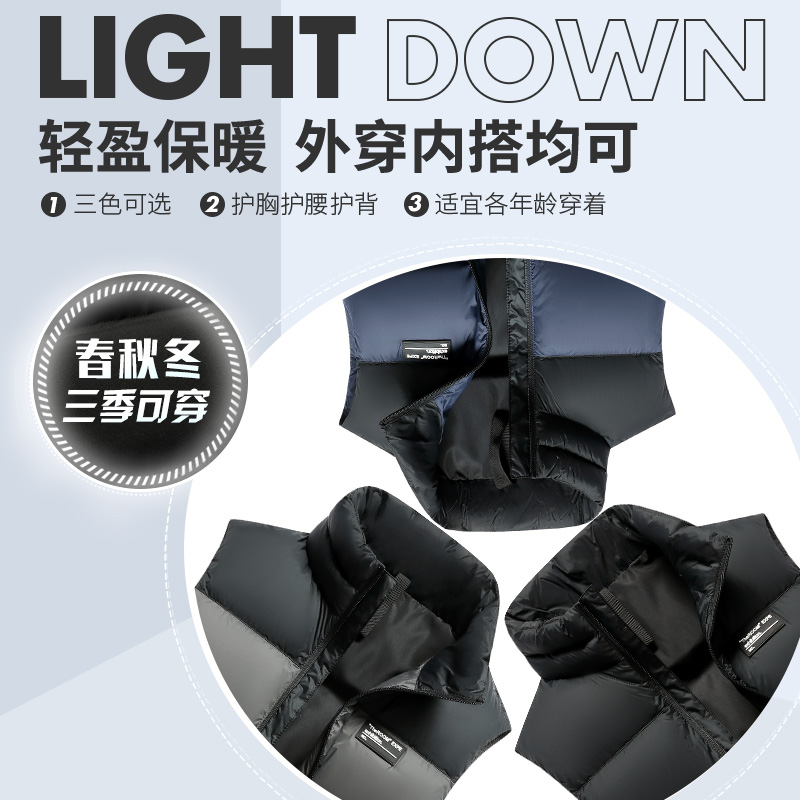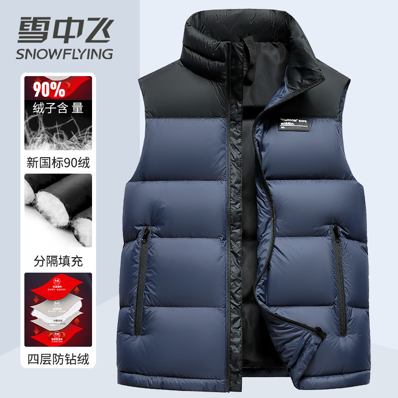 羽绒马甲背心大码 雪中飞2025秋季 潮立领短款 基础简约休闲男士 爆款