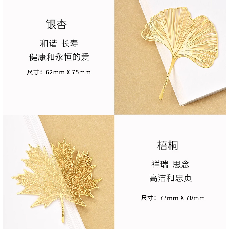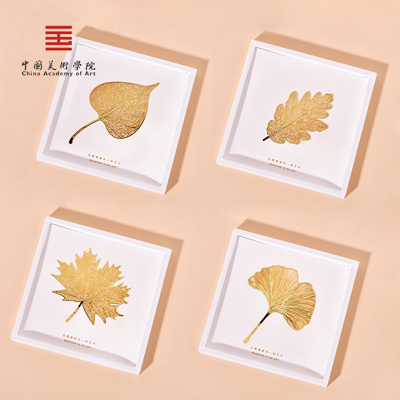 中国美术学院文创 银杏叶书签创意树叶金属高档精致古典国风黄铜叶脉书签礼盒毕业教师节送女老师生日小礼物