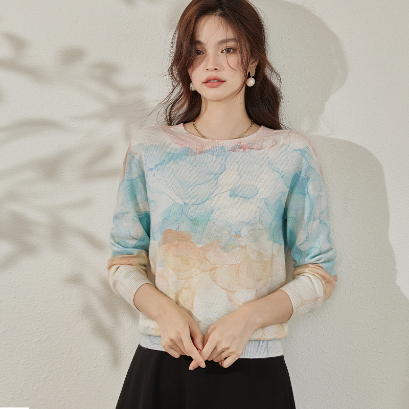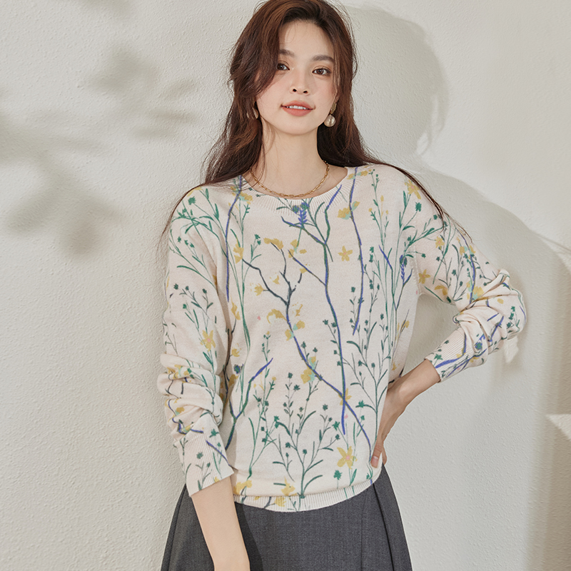 温柔打底针织衫 罗衣轻奢47.4%绵羊毛衣2025秋季 09151 印象花海