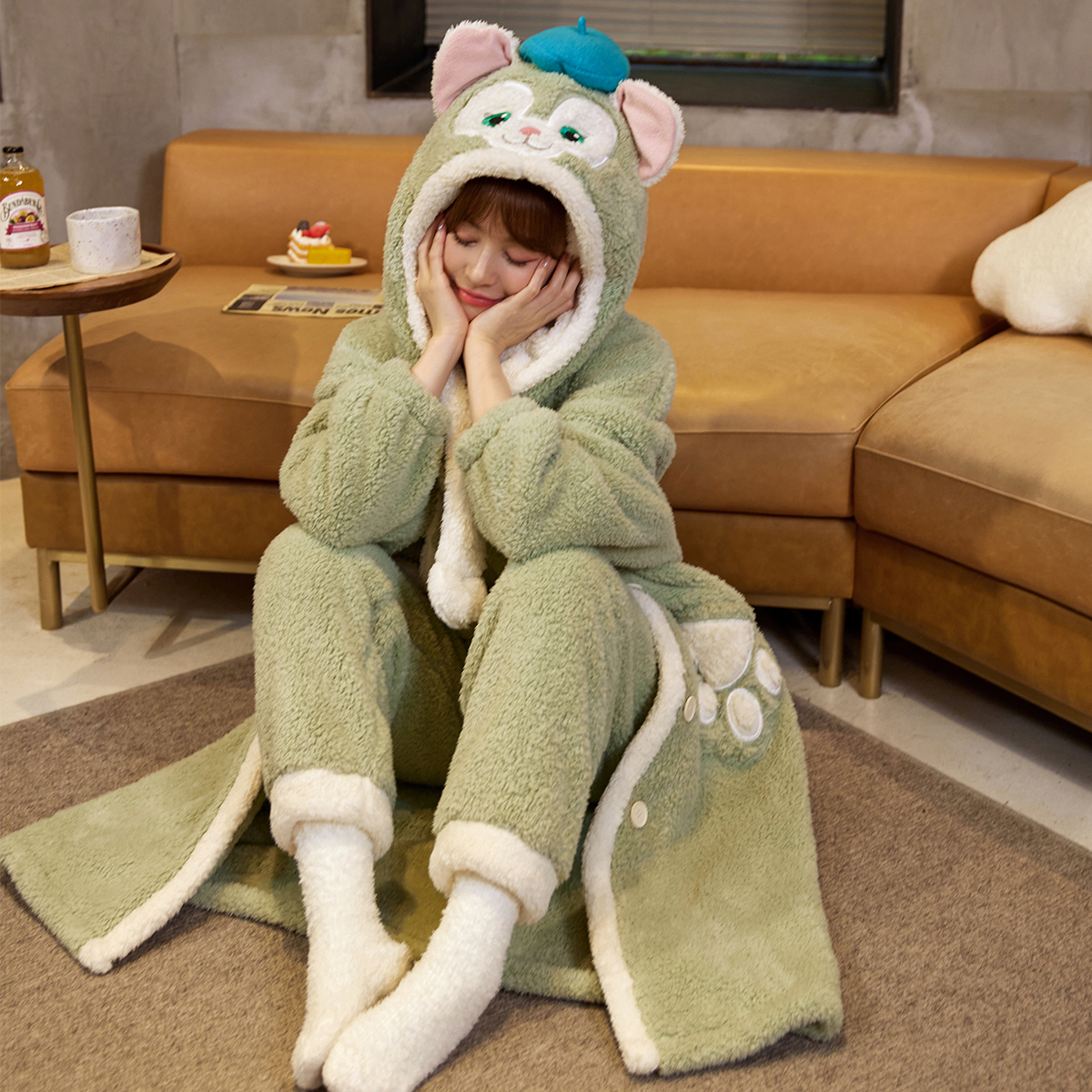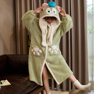 可爱家居服套装 加厚珊瑚绒睡衣女法兰绒可外穿睡袍长款 新款 秋冬季