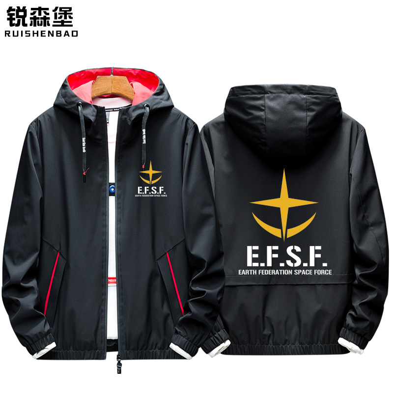 V37美式 宽松高街痞帅百搭情侣夹克 假两件撞色休闲连帽外套男秋季