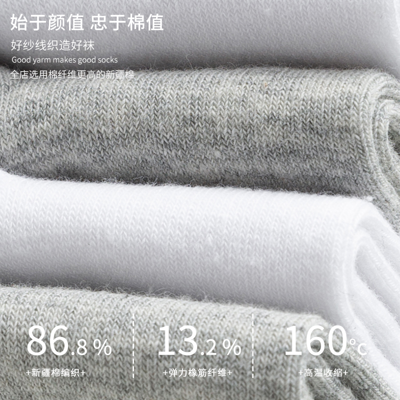 夏款 棉袜子男棉袜白色运动短袜夏季 中筒棉袜防臭吸汗男生长袜男士