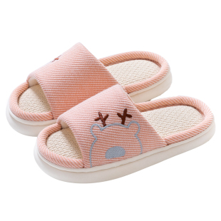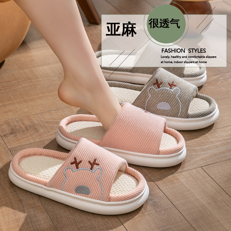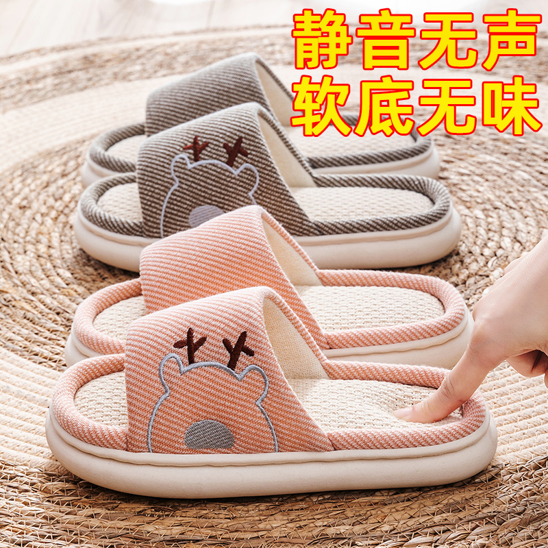 男 家居室内防滑厚底静音棉麻地板居家情侣家用四季 亚麻拖鞋 女夏季