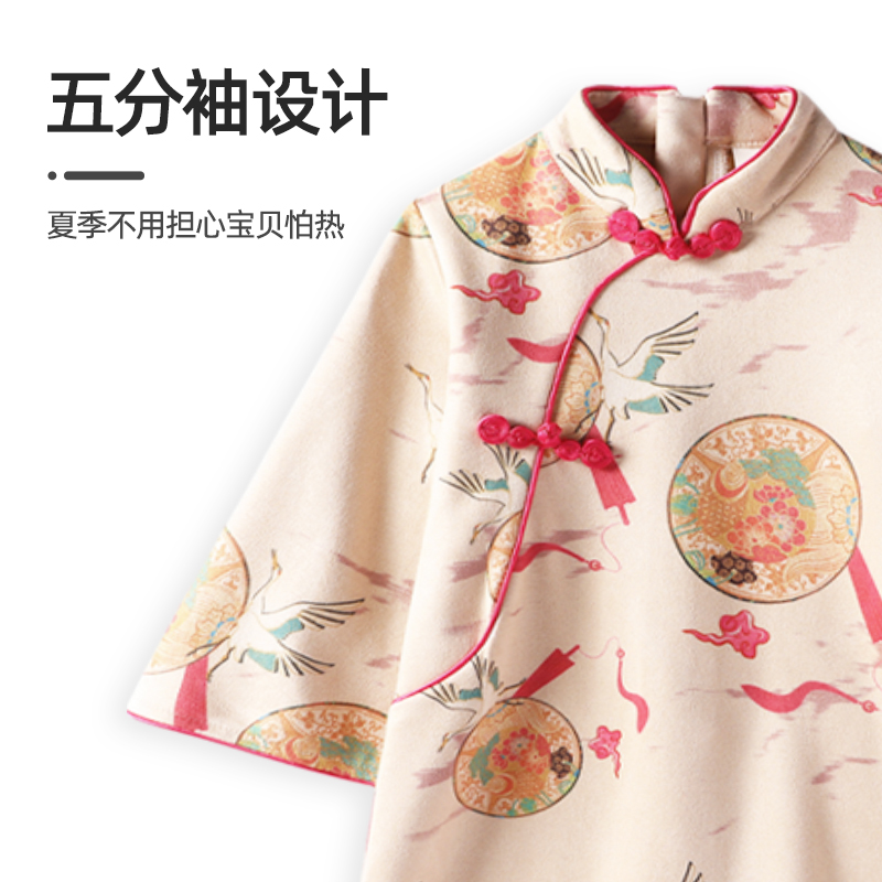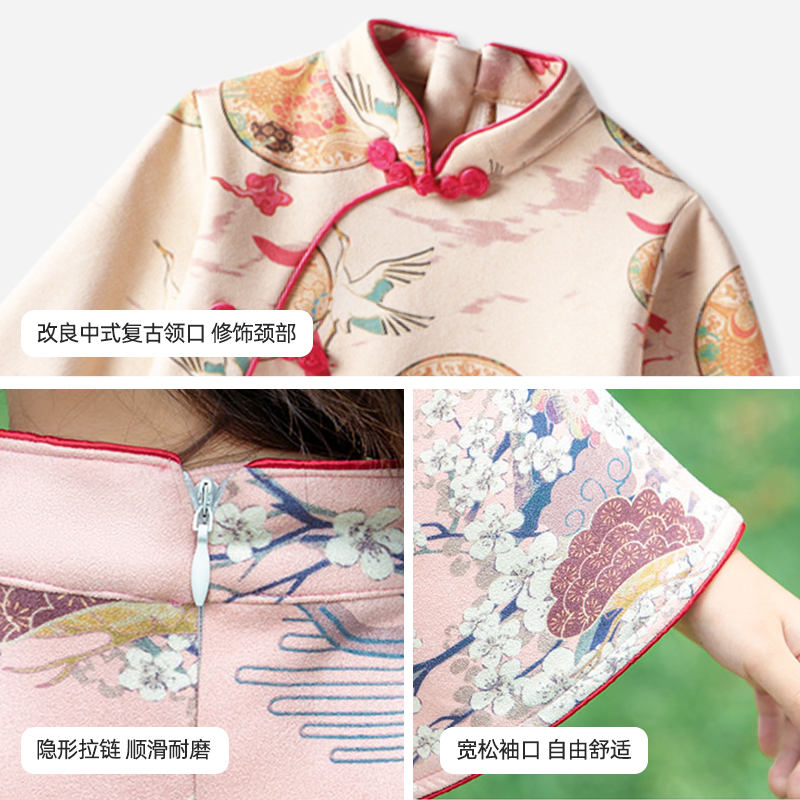 拉夏贝尔女童旗袍春季 儿童复古衣服女大童中国风改良汉服 2025新款