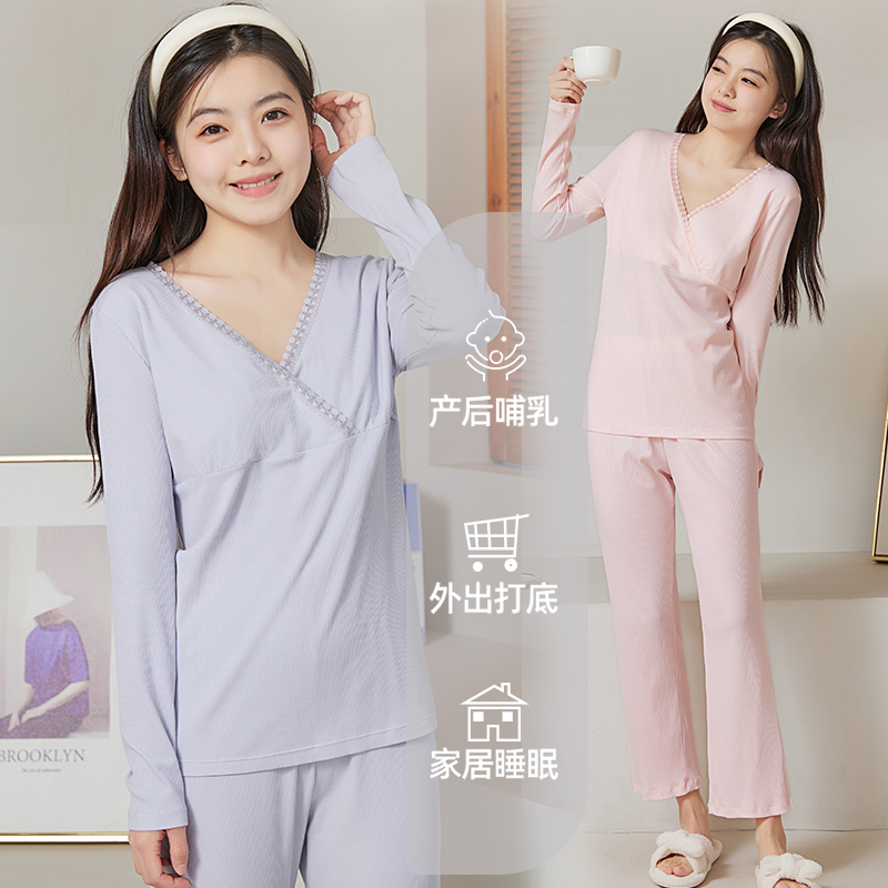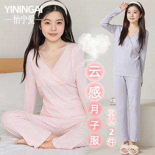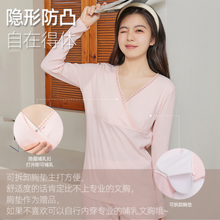 孕妇夏款 产后带胸垫哺乳产妇睡衣春秋大码 棉家居服 薄款 月子服夏季