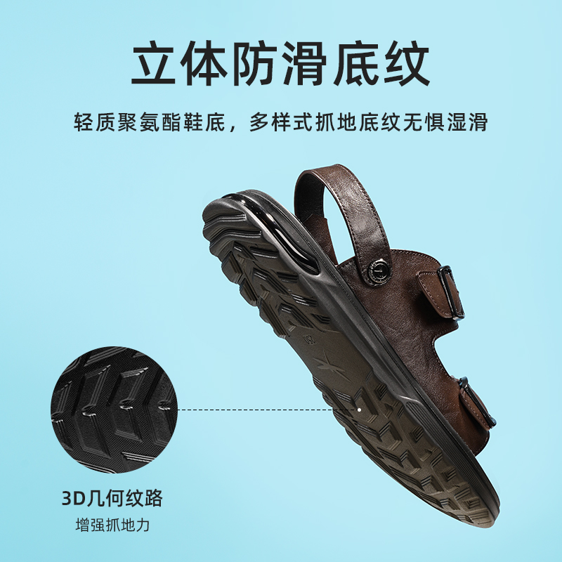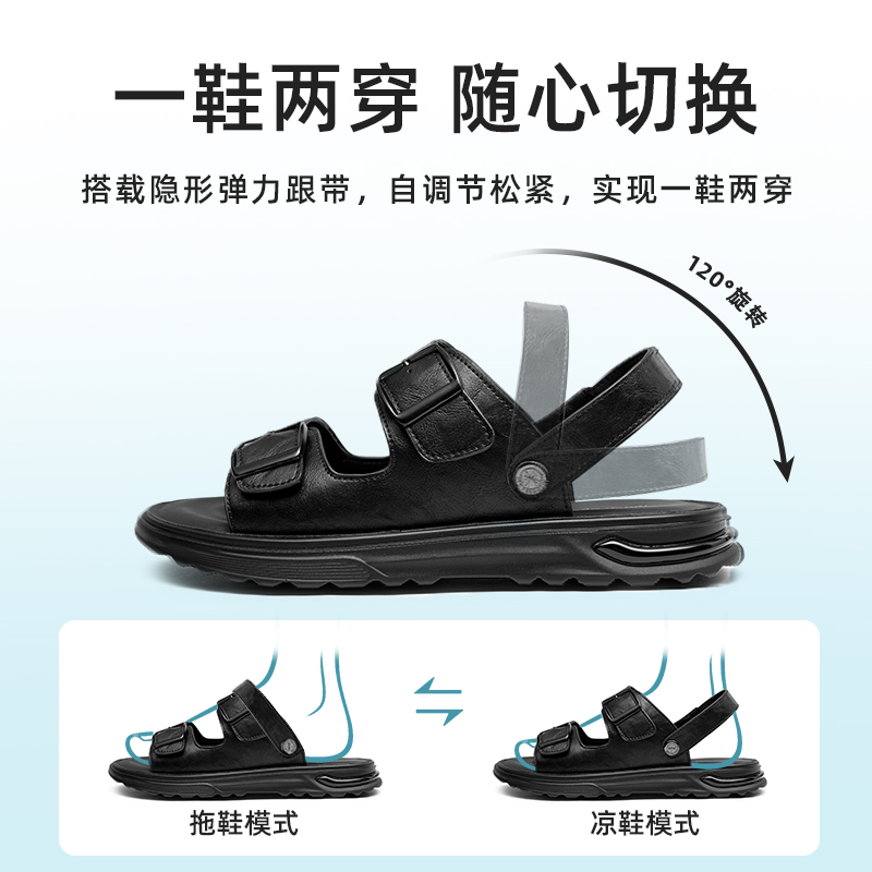 真皮休闲凉鞋 新款 男士 拖鞋 红蜻蜓男鞋 中老年爸爸软底凉开车鞋 夏季